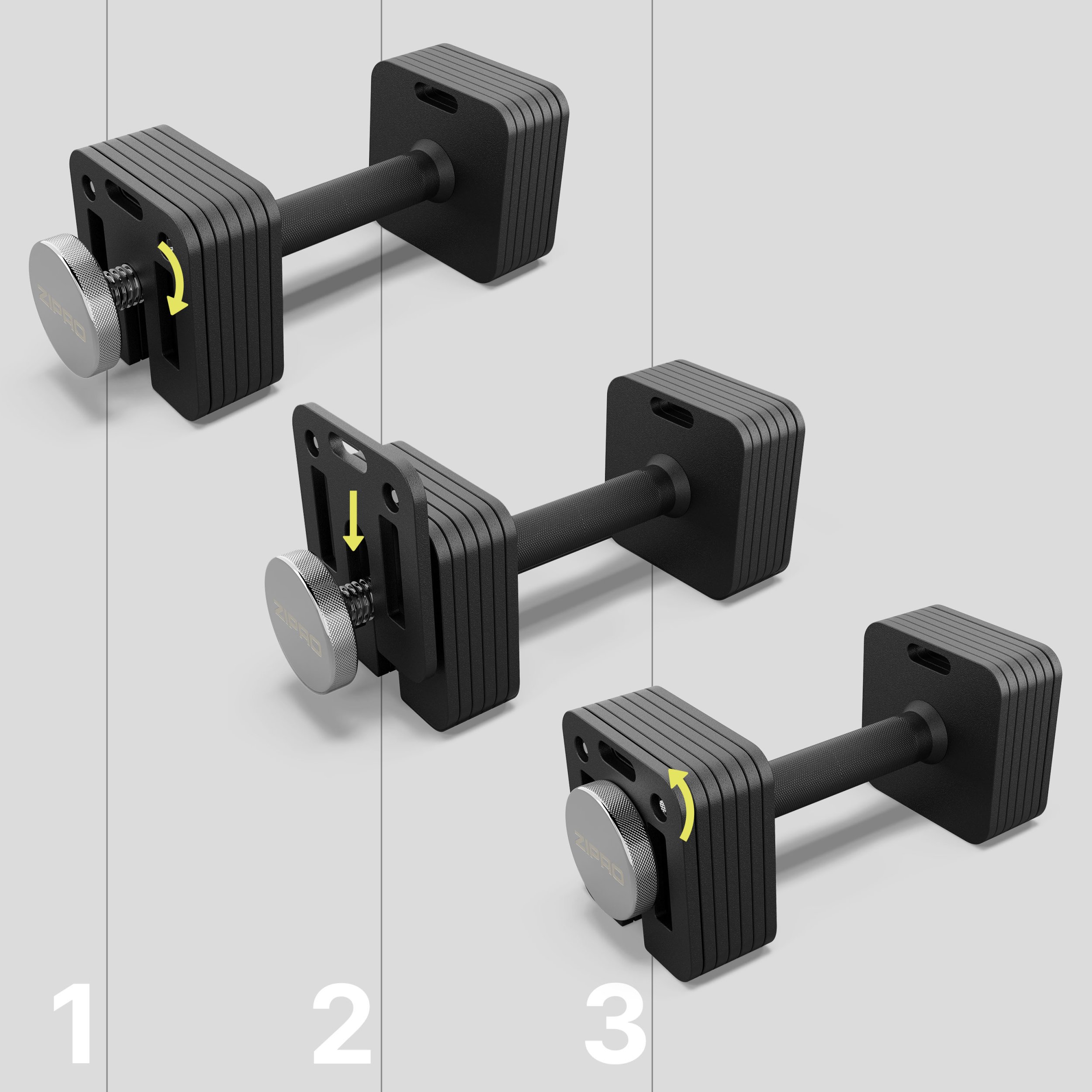 Το σύστημα αλλαγής βάρους είναι σχεδιασμένο για μέγιστη ευκολία και ασφάλεια. Σε αντίθεση με τους περισσότερους αλτήρες της αγοράς, που απαιτούν χρονοβόρο ξεβίδωμα και αφαίρεση δίσκων, ο αλτήρας ZIPRO απλοποιεί πλήρως τη διαδικασία.