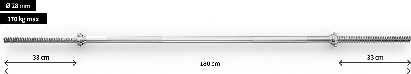 Η Zipro Ίσια μπάρα 180cm 28mm αποτελεί τον τέλειο εξοπλισμό για κάθε γυμναστήριο στο σπίτι, προσφέροντας εξαιρετική αντοχή και άνεση κατά την άσκηση. Κατασκευασμένη από επιχρωμιωμένο χάλυβα, μπορεί να υποστηρίξει βάρος έως 170 κιλά, εξασφαλίζοντας ασφαλές και σταθερό κράτημα χάρη στις βαθιές αυλακώσεις και τους βιδωτούς σφιγκτήρες. Ιδανική για προπόνηση δύναμης, βοηθά στην ενδυνάμωση των μυών του στήθους, των χεριών και των ποδιών, και είναι κατάλληλη τόσο για αρχάριους όσο και για προχωρημένους αθλητές.