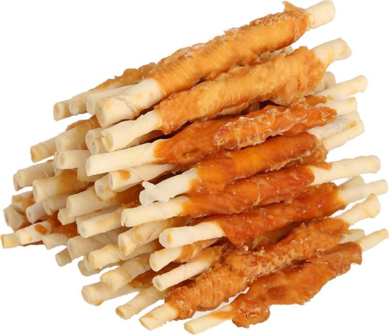 Τα λευκά στικς τυλιγμένα με κοτόπουλο Hilton είναι η ιδανική λιχουδιά για σκύλους που προσφέρει υψηλή πρωτεΐνη και φυσική γεύση. Περιέχουν 52,1% κρέας κοτόπουλου και 45% φυσικό δέρμα βοείου κρέατος, με αυστηρό έλεγχο ποιότητας για ασφαλή κατανάλωση. Ιδανικά για μάσημα και επιβράβευση, ενισχύουν την υγεία των δοντιών και προσφέρουν ευχαρίστηση στο κατοικίδιό σας.
