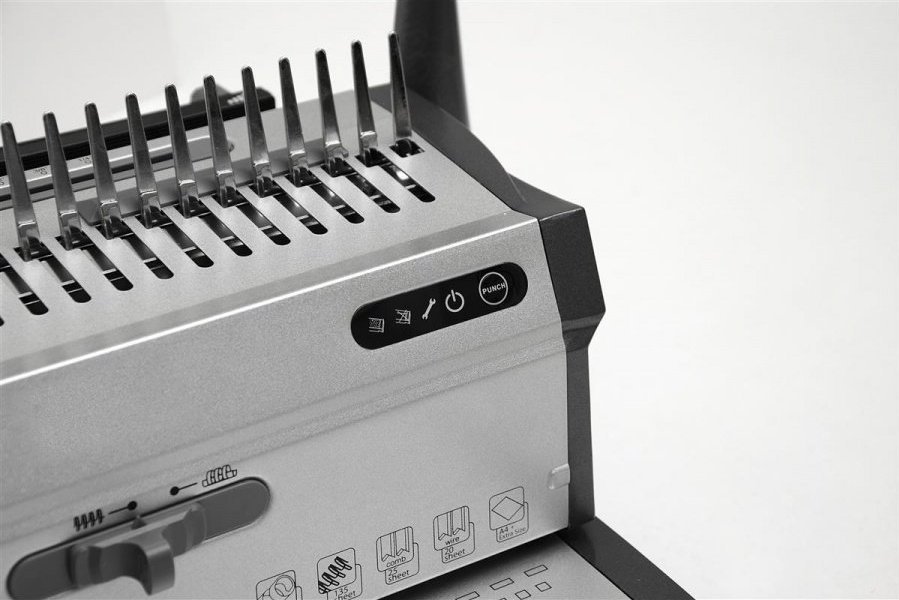 XP5 ΗΛΕΚΤΡΙΚΟ ΔΕΣΤΙΚΟ ΜΗΧΑΝΗΜΑ Ηλεκτρική μηχανή βιβλιοδεσίας για πλαστικές και συρμάτινες ράβδους (3:1) Μονάδα διάτρησης που λειτουργεί αθόρυβα Ένα κουμπί που ενεργοποιεί αυτόματα τα μαχαίρια διάτρησης LED που υποδεικνύουν: αφαίρεση ή υπερπλήρωση του δοχείου τεμαχισμού, εμπλοκή χαρτιού ή ανάγκη επισκευής, μηχανή βιβλιοδεσίας έτοιμη για λειτουργία Δύο ξεχωριστοί μοχλοί για πτύχωση πλαστικών και συρμάτινων χτενών Υποδοχή για δεσμευτικά έγγραφα οποιασδήποτε μορφής Ρυθμιστής πλάτους διάτρησης (2-6 mm) Μία φορά διάτρηση: έως 20 φύλλα (μεταλλική ράχη) / έως 25 φύλλα (πλαστική ράχη) Δέσμη εγγράφων με χωρητικότητα: πλαστική ράχη: έως 450, συρμάτινη ράχη: έως 115 φύλλα χαρτιού Λειτουργικό δοχείο για τεμάχια{Type} σαν χτένα . {Type} σαν χτένα . {Type} σαν χτένα . {Type} σαν χτένα . {Κυρίαρχο χρώμα} Ασημί . {Κυρίαρχο χρώμα} Ασημί . {Κυρίαρχο χρώμα} Ασημί . {Κυρίαρχο χρώμα} Ασημί . {Μέθοδος διάτρησης} Αυτόματη . {Μέθοδος διάτρησης} Αυτόματη . {Μέθοδος διάτρησης} Αυτόματη . {Μέθοδος διάτρησης} Αυτόματη . {Punch Distance Adjustment} Ναι . {Punch Distance Adjustment} Ναι . {Punch Distance Adjustment} Ναι . {Punch Distance Adjustment} Ναι . {Μέγιστη μορφή} A4 . {Μέγιστη μορφή} A4 . {Μέγιστη μορφή} A4 . {Μέγιστη μορφή} A4 . {Αριθμός δεμένων φύλλων} 450 . {Αριθμός δεμένων φύλλων} 450 . {Αριθμός δεμένων φύλλων} 450 . {Αριθμός δεμένων φύλλων} 450 . {Αριθμός φύλλων που τρυπήθηκαν ταυτόχρονα} 25 . {Αριθμός φύλλων που τρυπήθηκαν ταυτόχρονα} 25 . {Αριθμός φύλλων που τρυπήθηκαν ταυτόχρονα} 25 . {Αριθμός φύλλων που τρυπήθηκαν ταυτόχρονα} 25 . {Χρόνος προθέρμανσης} Δεν ισχύει. {ΝΤΟ