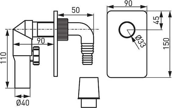 Syfon pralkowy podtynkowy DN40 (460.0)   Syfon do pralki lub zmywarki