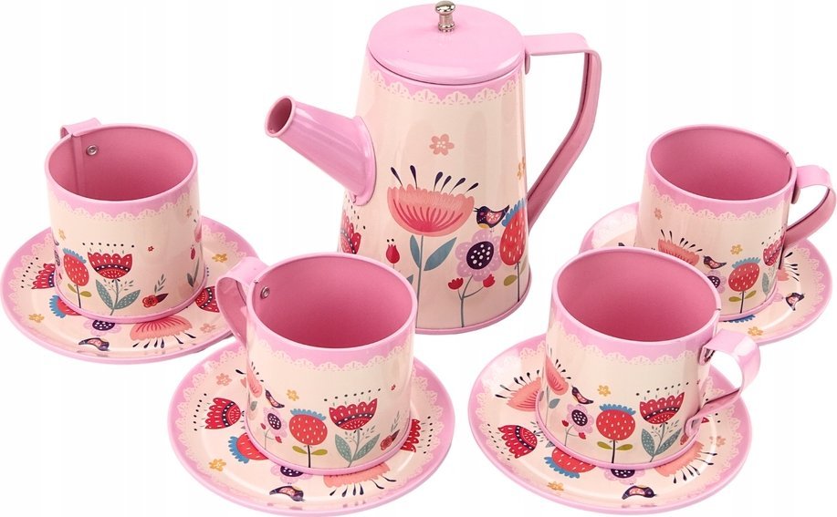 Σετ Καφέ Τσαγιού Φλιτζάνια Βραστήρας Δίσκος Ροζ Καφετέρια 12 τεμ. LeanToys