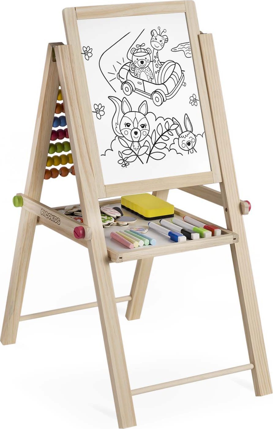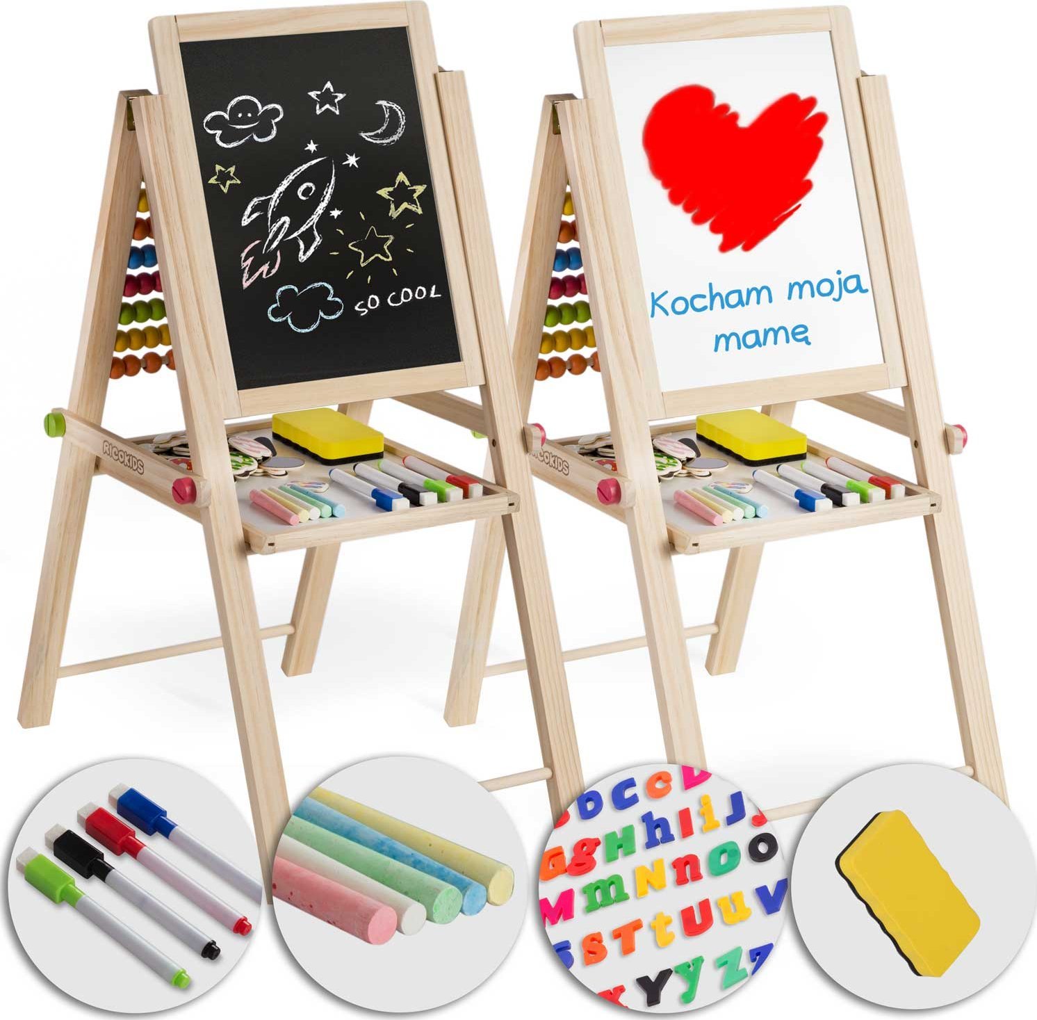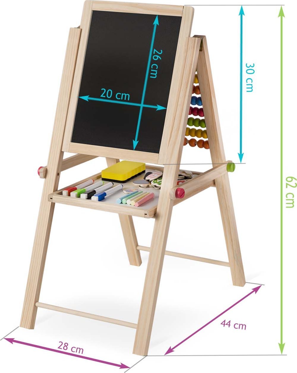 Πολυλειτουργικός πίνακας για παιδιά Δώστε στο παιδί σας ιδιαίτερη χαρά. Ένας σταθερός πίνακας ζωγραφικής για παιδιά από την Ricokids είναι ένα παιδικό όνειρο που έγινε πραγματικότητα. Το σετ περιέχει όλα τα απαραίτητα πράγματα για μάθηση και παιχνίδι. ▶ ΚΥΡΙΑ ΧΑΡΑΚΤΗΡΙΣΤΙΚΑ: περιέχει όλα τα απαραίτητα αξεσουάρ, αλφάβητο και άβακας, δύο σανίδες σε μία - κιμωλία και μαγνητική - περιστρεφόμενη, αφαιρούμενη σανίδα - μπορεί να χρησιμοποιηθεί χωρίς πλαίσιο κατασκευασμένο από υλικά ασφαλή για παιδιά, αναδιπλούμενο, πολύ σταθερό. ▶ Δύο σανίδες σε μία Μαγνητικός - η μαγνητική επιφάνεια σάς επιτρέπει να τοποθετείτε μαγνήτες στον πίνακα, συμπεριλαμβανομένων των γραμμάτων και των αριθμών που περιλαμβάνονται στο σετ. Επιπλέον, μπορείτε να γράψετε σε αυτήν την πλευρά του πίνακα με έναν διαγραφόμενο μαρκαδόρο. Κιμωλία - μέσω του σχεδίου, το μωρό σας διεγείρει τη φαντασία του και εκφράζει συναισθήματα, κάτι που είναι εξαιρετικά σημαντικό κατά την ανάπτυξή του. ▶ Μαθαίνουμε να μετράμε Άβακας - ιδανικός για εκμάθηση μέτρησης μέσω του παιχνιδιού και εκτέλεση των πρώτων απλών μαθηματικών υπολογισμών, που θα επιταχύνουν την ανάπτυξη του παιδιού. ▶ Περιλαμβάνεται με τον πίνακα: Επιφάνειες για γραφή με κιμωλία. Επιφάνειες γραφής με μαρκαδόρους (μαγνητικές). Αβακας. Αφαιρούμενη πλάκα. Ένα σετ από πολύχρωμους, σβήσιμους μαρκαδόρους. Σετ από χρωματιστές κιμωλίες. Σφουγγάρι για το σβήσιμο των μαρκαδόρων. Μαγνητικοί αριθμοί και γράμματα. Βίδες.  ▶ Αναδίπλωση χωρίς εργαλεία ▶ Δυνατότητα τραβήγματος της σανίδας Ένα επιπλέον πλεονέκτημα της πλακέτας είναι η δυνατότητα επέκτασης της επιφάνειας γραφής. Χάρη σε αυτό, μπορείτε να το χρησιμοποιήσετε οπουδήποτε. ▶ ΤΕΧΝΙΚΑ ΣΤΟΙΧΕΙΑ: Μάρκα: Ricokids Πιστοποιήσεις: CE, EN 71 Διαστάσεις σανίδας: 62 x 28 x 44 cm Διαστάσεις πεδίου γραφής: 20 x 26 cm{Υλικό} Ξύλο . {Υλικό} Ξύλο . {Υλικό} Ξύλο . {Υλικό} Ξύλο . {Υλικό} Ξύλο . {Υλικό} Ξύλο . {Υλικό} Ξύλο . {Υλικό} Ξύλο . {Υλικό} Ξύλο . {Τύπος} Μαγνητικός . {Τύπος} Μαγνητικός . {Τύπος} Μαγνητικός . {Τύπος} Μαγνητικός . {Τύπος} Μαγνητικός . {Τύπος} Μαγνητικός . {Τύπος} Μαγνητικός . {Τύπος} Μαγνητικός . {Τύπος} Μαγνητικό