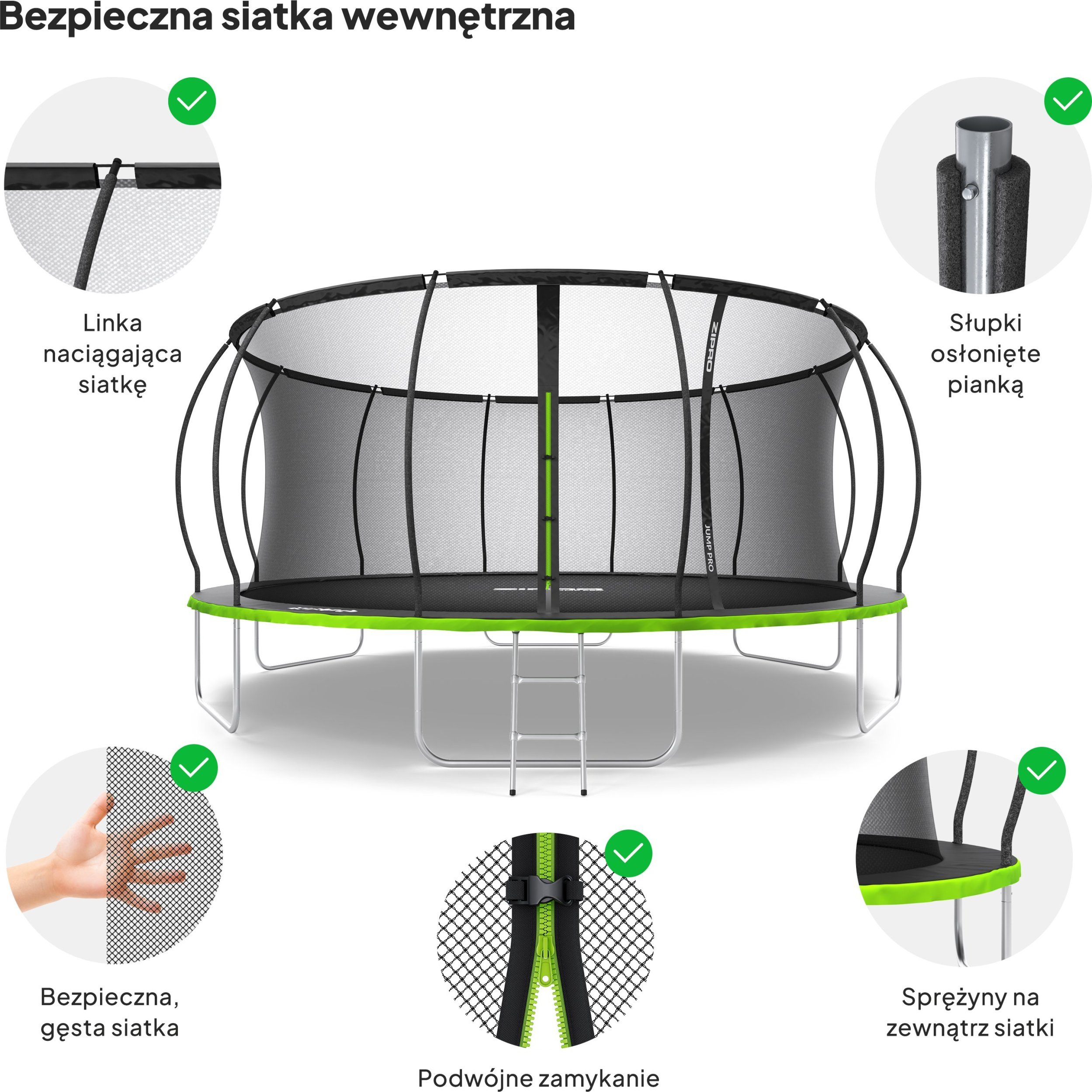 Στην έκδοση PREMIUM το δίχτυ είναι εσωτερικού τύπου, διαχωρίζοντας πλήρως την επιφάνεια αναπήδησης από τα ελατήρια και προσφέροντας το υψηλότερο επίπεδο ασφάλειας.