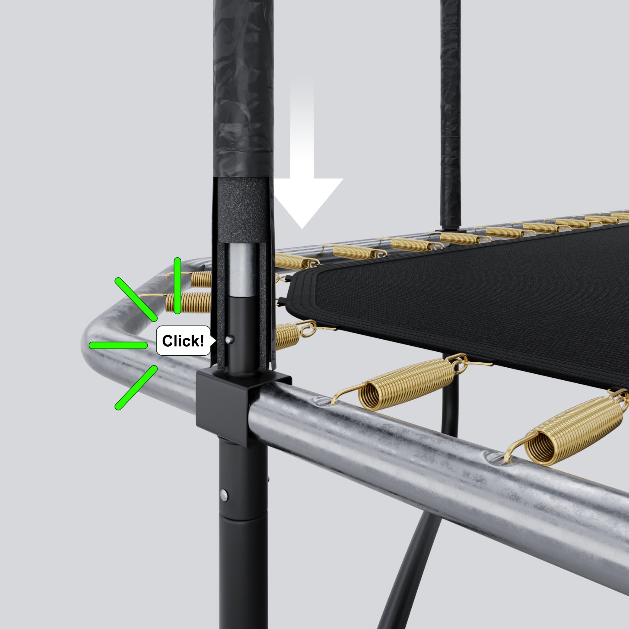 Το σύστημα CROSS-SECTION επιτρέπει τη συναρμολόγηση του τραμπολίνου χωρίς βίδες και εργαλεία.