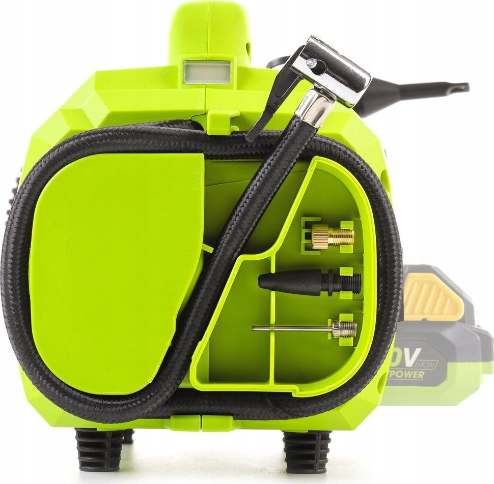 Fieldmann FDAK 70205-0 διαχωριστής μπαταρίας ΤΕΧΝΙΚΕΣ ΠΑΡΑΜΕΤΡΟΙ Τύπος μπαταρίας Li-Ion 1 × 20 V - Η μπαταρία και ο φορτιστής δεν περιλαμβάνονται Μέγ. Πίεση εξόδου: 10,3 bar Ροή αέρα: 235 l/min FDAK 70205-0 διαχωριστής μπαταρίας Fieldmann FDAK 70205-0 με μέγιστη πίεση εξόδου 10,3 bar και ροή αέρα 235 l/min. Είναι εξοπλισμένο με εργονομική λαβή για εύκολη μεταφορά. Ο φορτιστής και η μπαταρία δεν περιλαμβάνονται. Μέρος της σειράς Fast Power 20V Μπαταρία τύπου Li-Ion 1 x 20V Max. πίεση εξόδου: 10,3 bar Ροή αέρα: 235 l/min Εργονομική λαβή για εύκολη μεταφορά Η συσκευασία περιλαμβάνει έναν προσαρμογέα βαλβίδας, μια βελόνα για το φούσκωμα σφαιρών, έναν προσαρμογέα γενικής χρήσης και έναν εύκαμπτο σωλήνα υψηλής πίεσης
