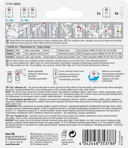 Αρχική Σπίτι & Κήπος Κατασκευές Τεχνολογία στερέωσης Ρυθμιζόμενα αυτοκόλλητα καρφιά Tesa για πλακάκια και μέταλλο έως 4kg 2τμχ. (H7776702)
