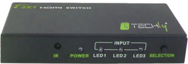 Διακόπτης HDMI 3 σε 1 από την Techly, με 3 είσοδοι και 1 έξοδο, υποστηρίζει ανάλυση 4K2K για σύνδεση πολλαπλών πηγών σε μία οθόνη.